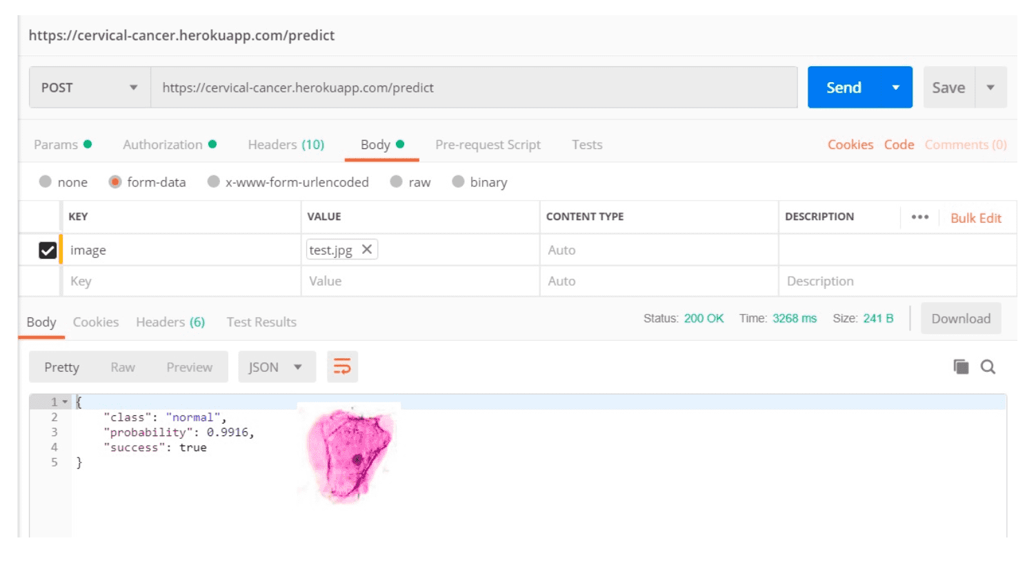 Por eso creamos TUSKAS, un servicio accesible mediante Internet al cual le envías una foto de una célula y te dice si es normal o anormal: